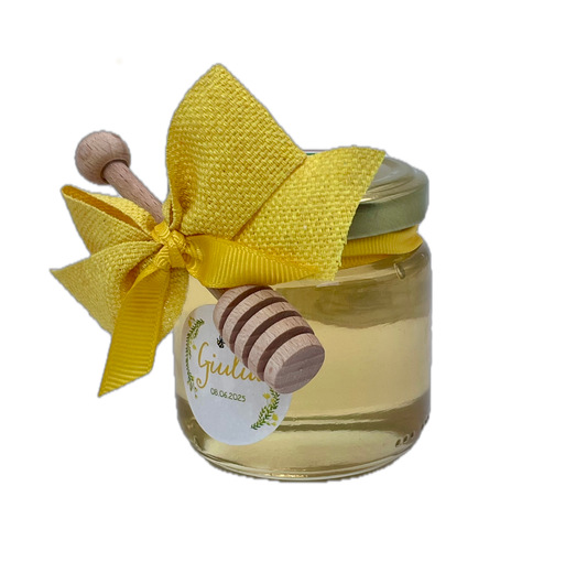 Bomboniera miele 125 g con spargimiele in legno